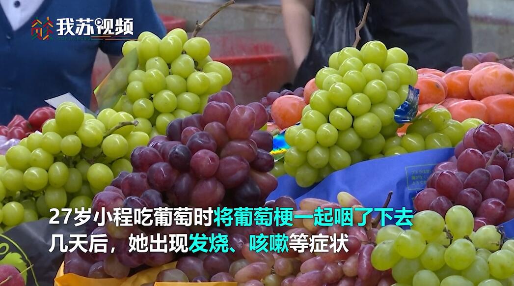 近日,江苏27岁的小程吃葡萄时,不慎将葡萄梗一起咽了下去。几天后,她出现发烧、咳嗽、呼吸不畅等症状。经查,小程把葡萄梗呛到了气管里,引发肺炎。医生为小程做了无痛支气管镜检查,半小时后将异物取出。提醒:若小型异物呛入气管,需及时就医。