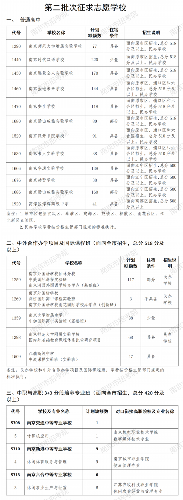 参加第二批次录取的学校有普通高中、中外合作办学项目及国际课程班、招收中职与高职3+3分段培养专业班、综合高中班、五年制高职专业班、技师学院和高级技工学校技师班及高级技工班的学校。截至7月17日,全市已经累计录取51667名考生,其中普通高中38703人,职业学校12964人。7月17日20时起,已录取的考生可在南京市教育局网站上查询到录取信息,并在近日注意查收由南京市教育招生考试院统一印制并免费特快专递的《录取通知书》。