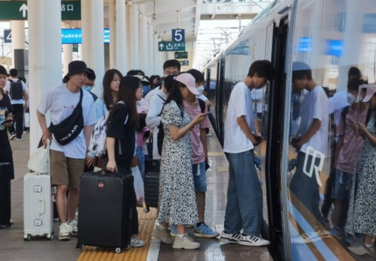 分析上半年客流走势发现,今年上半年,我市高铁客流呈恢复性增长,整体呈现“先抑后扬”态势,“五一”、端午假期,客流回升显著,旅客到达、发送量均快速攀升。尤其是7月以来,火车站旅游、探亲、学生客流激增。铁路部门表示,在实施暑期运行图的基础上,将密切关注客流变化情况,及时调配运能,优化旅客列车开行,加大安检查危力度,全力做好站车服务工作。