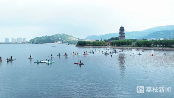 据介绍,桨板运动是从冲浪板发展而来的一项水上运动,因其参与度高、简单易学和时尚潮流,成为风靡全国的运动“新势力”。对此,国家体育总局水上运动管理中心重磅推出了中国桨板百城公开赛这一全新国家级一星赛事。大圣湖三面环山,水域面积约1平方公里,每年有上万只候鸟来此越冬栖息,生态环境优越。恰逢今年是海清寺阿育王塔建塔一千年,加之国家5A级花果山风景区秀美的自然山水、厚重的历史文化,促成了中国桨板百城公开赛的这次牵手。本次赛事是连云港市乃至苏北地区首次举办的国家级桨板赛事,也是景区创新谋划“山水”户外体育赛事的重要内容。