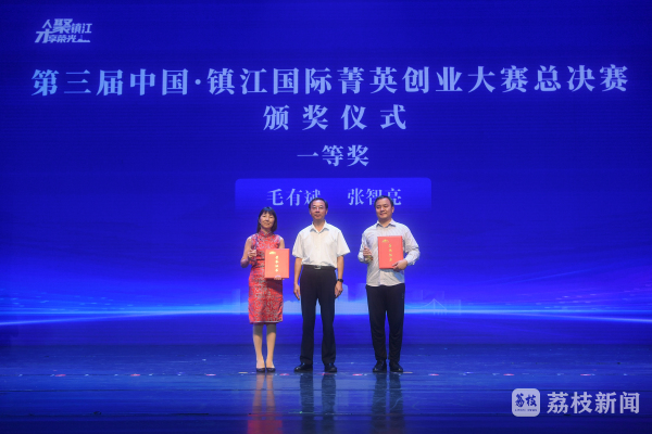 现场,第三届中国·镇江国际菁英创业大赛获奖选手上台获颁证书和奖杯。据了解,人才“镇兴”行动实施以来,镇江市紧贴产业链布局人才链,每年举办国际菁英创业大赛,吸引海内外优秀人才来镇创新创业。经过5个多月的选拔角逐,第三届大赛共产生一等奖2名、二等奖5名、三等奖8名。