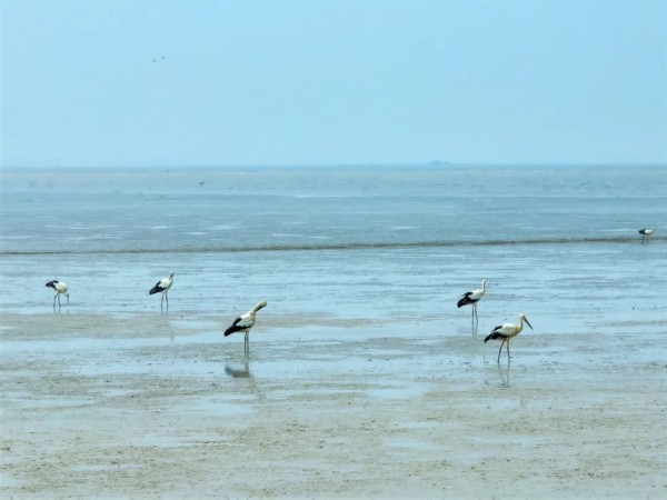 自2022年1月起,连云新城滨海湿地区域频繁出现东方白鹳的身影。2023年7月再次发现了约20只濒危鸟类,进一步表明连云新城滨海湿地的生境非常适合这些鸟类的生存。它们已经将这里作为迁徙的固定停歇点或长期繁衍地。