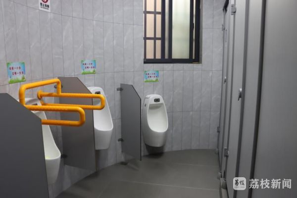 扬中市城管局结合区域环境,将公厕外观选择米黄色作为主色调,内部采用灰白色系装修,优化公厕空间,增设了第三卫生间,并从细节入手,设计了两高一低的洗手盆,配备了成人、儿童坐便器和小便池,安装了安全扶手、婴儿护理台、置物架,贴心地设置了防撞角,同时完善了残障设施,升级了管理间,较好地解决了过去厕位不足、男女厕位比例不合理、特殊人群如厕不便等难题。
