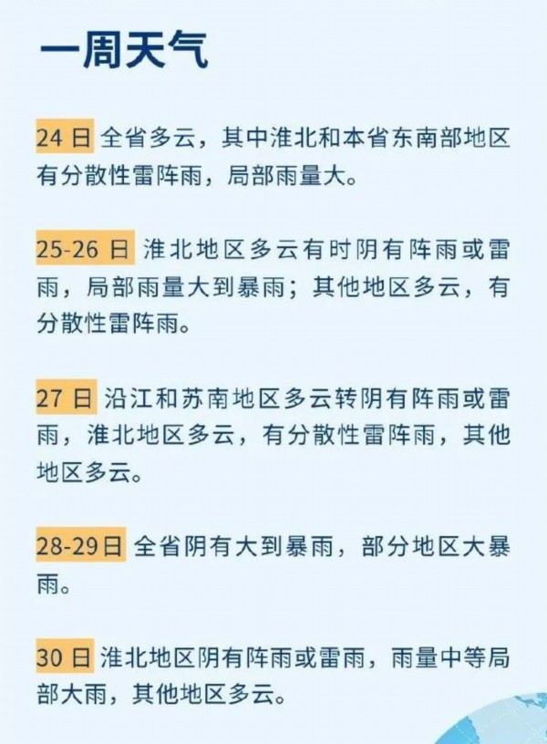 出梅后江苏仍处于主汛期,需注意防范局地强降雨引发的城市内涝、地质灾害及雷暴大风、雷电等对流天气危害。
