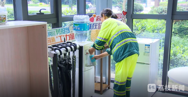 江阴高新区总工会专职副主席王筱漪介绍,这样的站点,高新区目前有三家,主要为环卫工人、快递员、外卖小哥等户外劳动者提供“热可解暑、累可歇脚、渴可饮水、乏可解压”的一站式暖心场所。