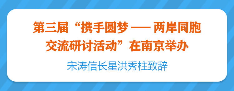 我苏客户端讯 7月25日上午,以“中国式现代化与国家统一”为主题的第三届“携手圆梦——两岸同胞交流研讨活动”在南京开幕。海峡两岸有关方面、党派团体负责人和代表,专家学者及台胞台青代表150余人出席。中共中央台办、国务院台办主任宋涛,江苏省委书记、省人大常委会主任信长星,中国国民党前主席、中华青雁和平教育基金会董事长洪秀柱在开幕式上致辞。