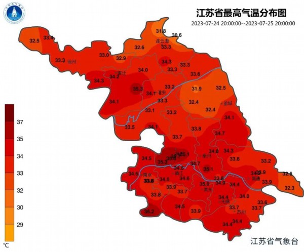 7月25日20时至7月26日20时,全省阴有阵雨或雷雨,其中沿淮和淮北地区大到暴雨,其他地区小到中雨。最高温度:沿江和苏南地区33℃左右,其他地区31~32℃;最低温度:淮北地区24~25℃,其他地区26~27℃。全省偏东风4级左右阵风5-6级,有雷雨地区雷雨时短时阵风7-8级。