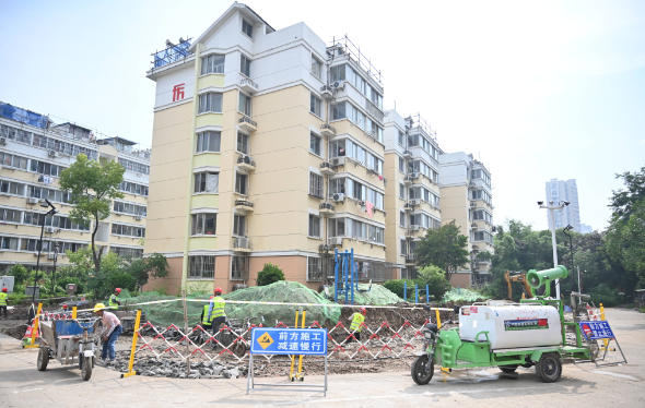 近日,在江苏省淮安市清江浦区书香华庭老旧小区改造项目施工现场,记者看到建筑工人正在有序进行路面硬化、排水管道改造、路灯管道铺设等工作,一派忙碌景象。“从得知消息到征集居民意见,再到施工单位进场施工,不过短短几个月,每天都能看到新变化。”对改造后的场景,居民们都充满了期待,这是该区今年新开工的第二批老旧小区改造项目之一。自3月底改造项目启动以来,全区20处被时光留下“划痕”的老旧小区陆续开启更新之旅,截至目前已完成项目工程量约43%。