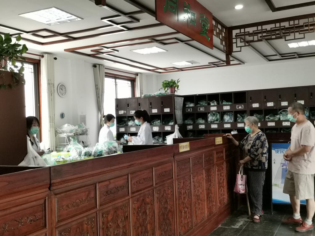 患者在苏州市吴江区同里镇卫生院中医馆等待拿药。新华社记者田晓航 摄