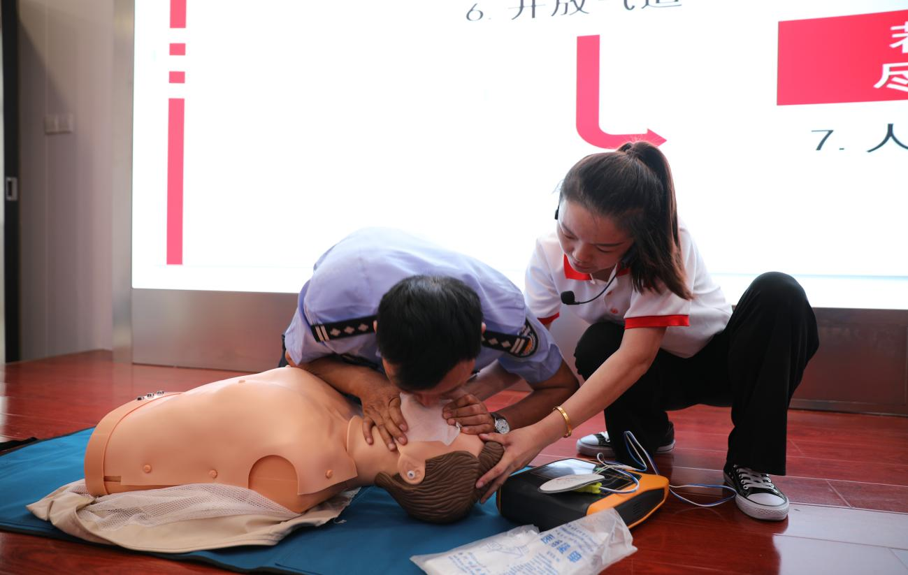 参训民警学习认真,逐一上台进行操作练习。培训老师在一旁认真指导,及时引导纠正错误动作,确保每一名学员基本掌握急救方法,做到“判断准、操作快、效果好”。