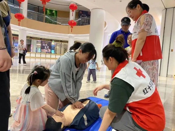 △炎炎夏日,在大丰荷兰花海景区新时代文明实践点,开展“少年急救官,‘救’在夜花海”红十字救护公益培训,红十字青年志愿者向游客讲解急救知识,为景区夜游增添一份平安。