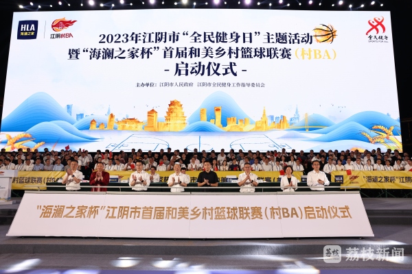 在第15个“全民健身日”来临之际,8月8日晚,江阴市2023年“全民健身日”主题活动暨“海澜之家杯”首届和美乡村篮球联赛(村BA)启动仪式在新桥镇飞马水城举行。