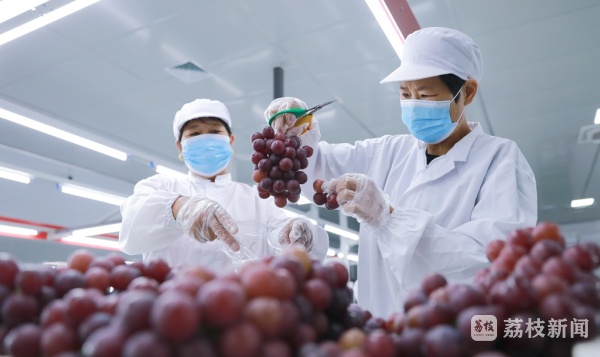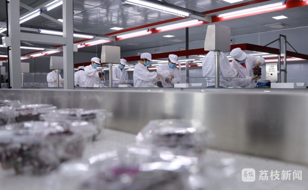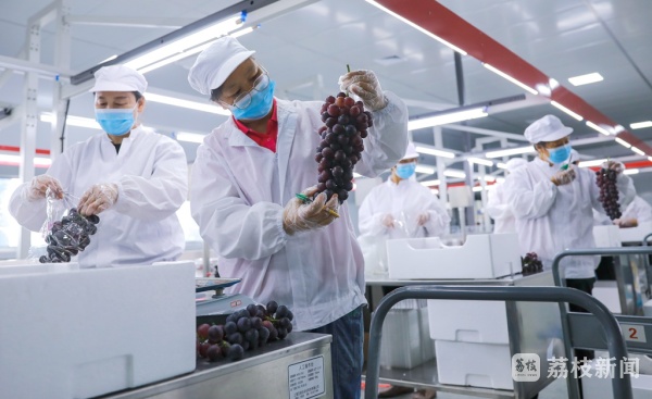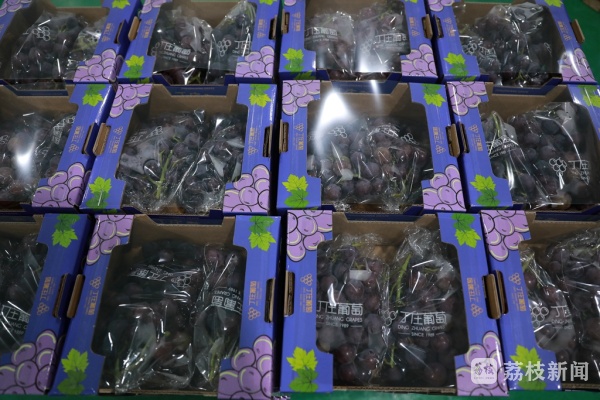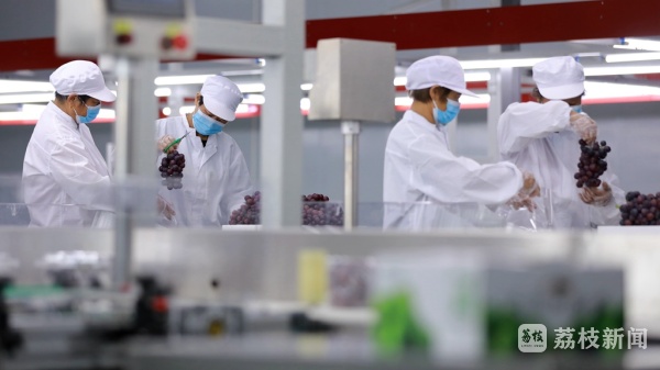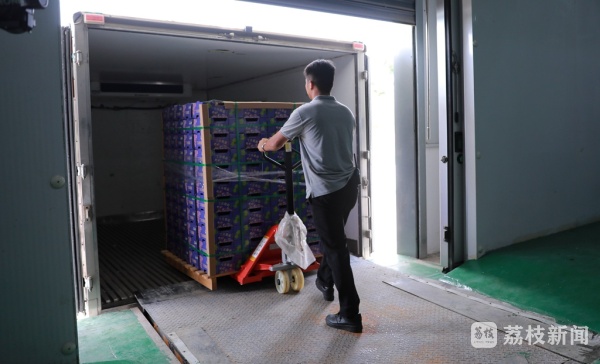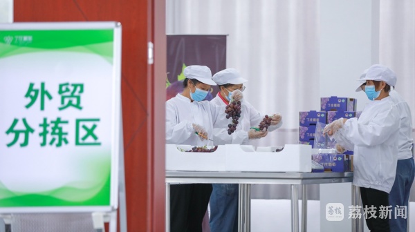 今天上午9点,在句容茅山镇丁庄万亩葡萄合作联社分拣中心,工人们正将一串串新鲜采摘的葡萄修剪、称重,装入印有丁庄葡萄标识的包装盒中。紧接着,工作人员将打包好的葡萄送入冷库预冷。据了解,本次出口目的地为新加坡当地生鲜超市,出口品种主要以巨峰为主,出口量近2吨。丁庄万亩葡萄专业合作联社理事长陈玲告诉记者:“我们今年前期已经到新加坡那边考察了我们海外市场,跟新加坡的超市也建立了稳定的合作关系,所以今年我们会在那边的超市设立丁庄葡萄专柜,后面我们也会进行常态化的出口。”