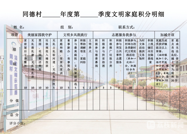 为了让 “文明家庭积分制”在村组有更生动的实践,今年同德村党委还将积分奖励制度延伸到对评为道德模范、扬中好人的群众礼遇帮扶活动中,村民可以享受优先推荐入党、免费体检、子女就学享受资助、联动金融机构授信和给予优惠利率贷款等待遇,让积分管理成为培树乡村文明新风的新力量。