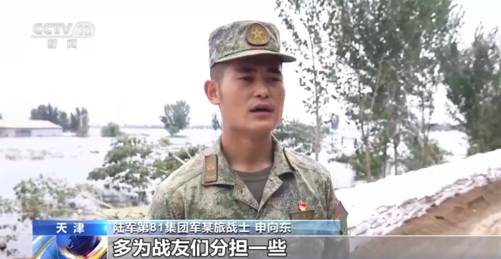 陆军第81集团军某旅战士 申向东:干活的时候我也没想那么多,就是想着自己多干一些,多为战友们分担一些,希望早日将堤坝建筑好,保护好人民的财产安全。现在我也成为一名光荣的共产党员,身上的责任感觉更加重了。下一步,我要更加努力,希望早日加入党员突击队。