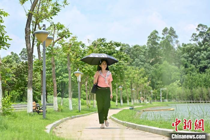 6月26日,台湾音乐教师李国瑛在肇庆学院漫步。 中新社记者 陈骥旻 摄