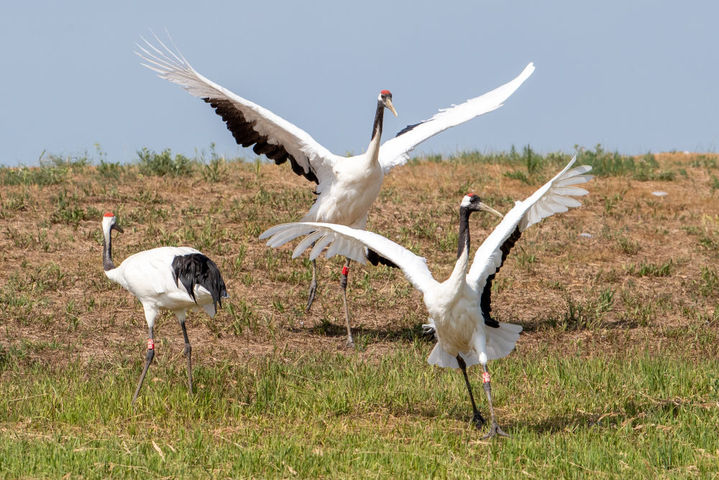 这是6月28日在位于黑龙江省西部的黑龙江扎龙国家级自然保护区拍摄的丹顶鹤。新华社记者张涛 摄