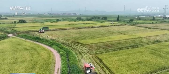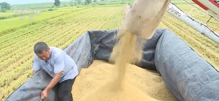 央视网消息:最近,江西省的200多万亩再生稻进入收割期,种粮大户抢抓晴好天气,利用农机收割,确保颗粒归仓。