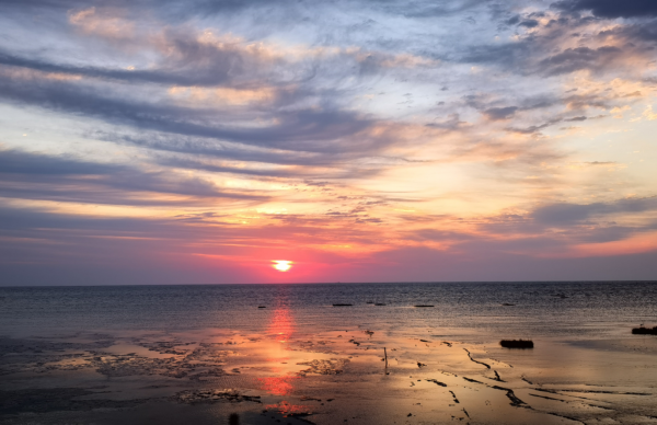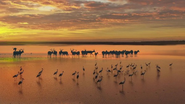 盐城大丰川东港美丽海湾位于江苏省盐城市东南部沿海,拥有19.2公里海岸线、158平方公里海湾面积,海湾内滩涂湿地与盐土植被交替分布。海湾内有大丰麋鹿国家级自然保护区和江苏盐城湿地珍禽国家级自然保护区2个国家级自然保护区,是“中国麋鹿之乡”、中国黄(渤)海候鸟栖息地核心区以及鸟类在东亚—澳大利西亚迁徙路径上最重要的中转站,也是我国东部唯一的暗夜星空保护地和授时观测站。