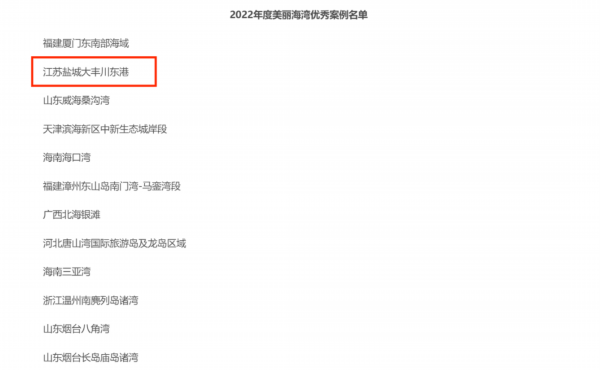 8月17日,生态环境部发布《关于第二批美丽海湾优秀案例名单的公示》,江苏盐城大丰川东港上榜第二批美丽海湾优秀案例,为江苏唯一。