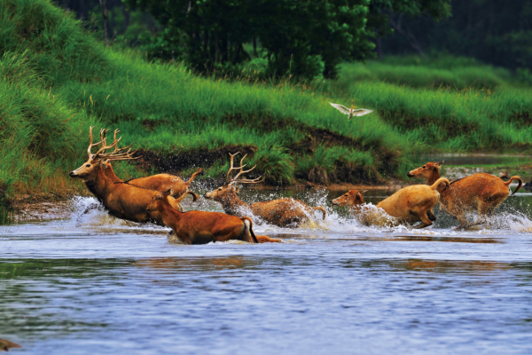 三是整治修复亲海岸线10km,采用机械加人工、散放麋鹿等方式整治互花米草;