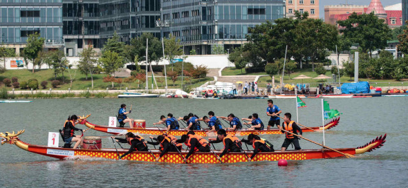 记者了解到,每年在江宁上演的龙舟赛事高达几十场。江宁区相关负责人表示,早在2021年,南京市体育集团与江宁开发区共同打造的国家级水上运动项目——帆船训练基地落户九龙湖国际企业总部园。今年端午节当天,第二十届南京市外商投资企业龙舟邀请赛在江宁百家湖拉开战幕,在宁外企扬子巴斯夫、菲尼克斯电气、西门子数控、舍弗勒等16支参赛队伍激情挥桨、奋勇争先。