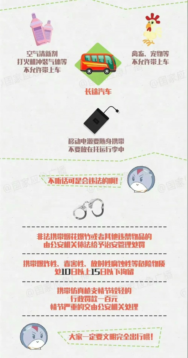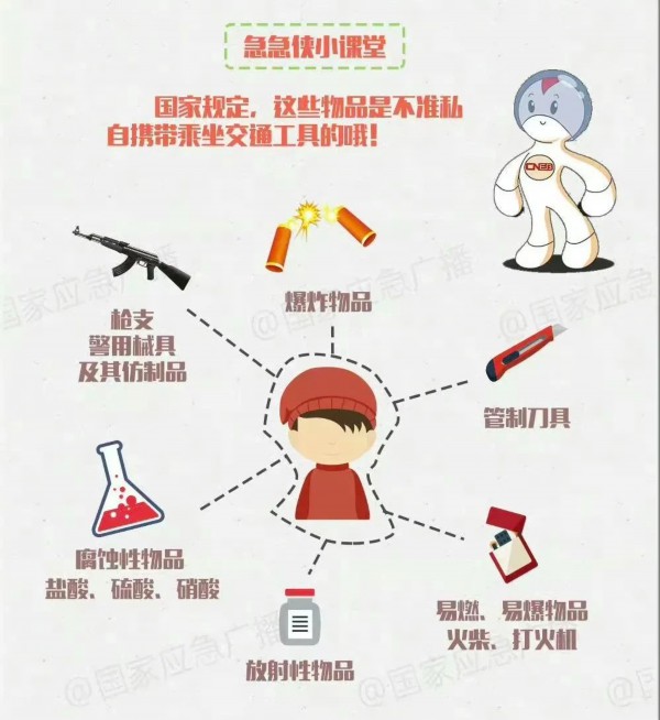 为了您和他人的生命财产安全,身为乘车人要熟知,以下物品不能带上车!