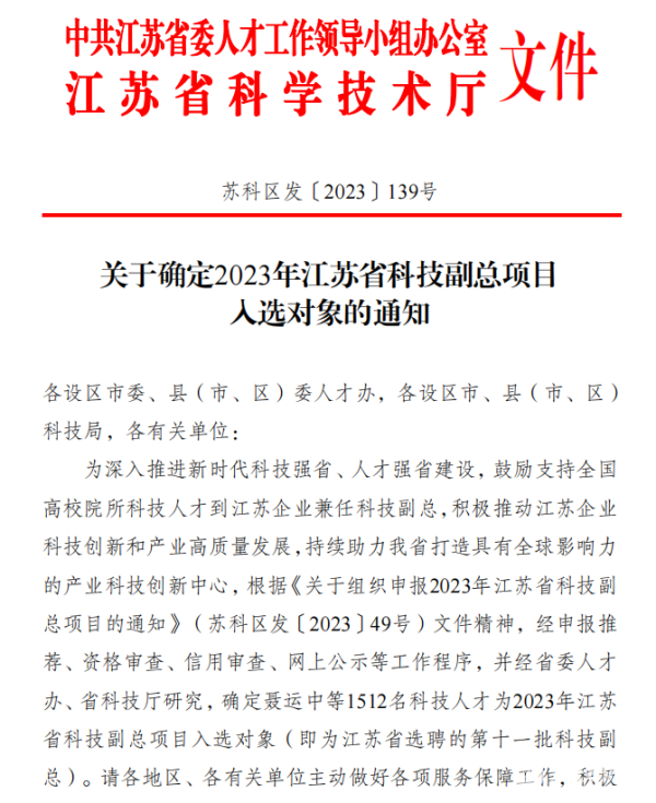 近日,2023年江苏省科技副总项目入选对象名单公布,建湖县共60个项目入选,总数位列全市第一。