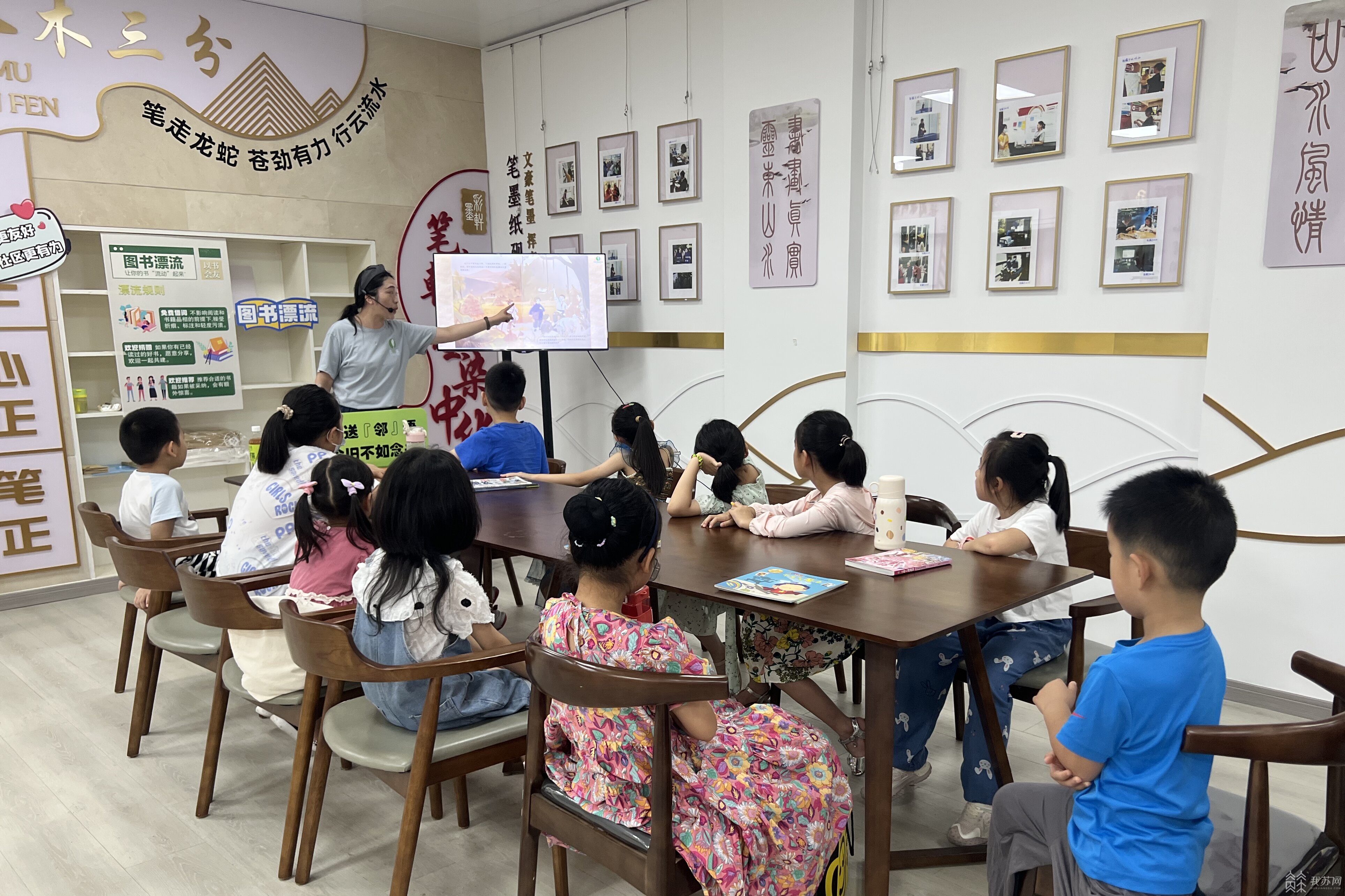 协民社区联合蓝树蓝双语绘本馆在社区友邻客厅二楼,开展“悦读一夏”青少年红色经典绘本阅读活动。导读老师结合PPT演示、短片播放等形式,用声情并茂的语言,将红色经典绘本故事《鸡毛信》娓娓道来,生动地讲述了龙门村的儿童团长海娃临危受命,去给八路军张连长送鸡毛信的路途中遭遇险情,凭借其机智勇敢与敌人斗智斗勇,最后顺利完成任务的故事。整个故事环节跌宕起伏、险象环生,孩子们也听得分外认真,并积极与老师开展互动问答。参加活动的孩子们通过导读老师的讲述,深刻感受到烽火硝烟中英雄少年海娃的机智勇敢,也懂得了现在的幸福生活来之不易。活动的最后,每个孩子还将从家中的两、三本旧书精心打包好并手写寄语,与其他小朋友开展互换。通过“好书互换”分享知识的同时,也让友谊得到传递。