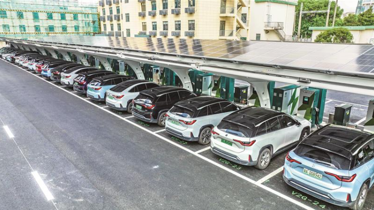 昨天上午,50辆新能源车驶入位于长江路3号的车网互动验证中心(e-Park),加入到一场全国规模最大的车网互动实用验证中(如图)。在30分钟的时间里,50辆新能源车通过接入V2G充电桩,向电网反向充电,以验证电网对电动汽车反向充电负荷的响应能力。该试验取得成功意味着电动汽车可从交通工具变为“充电宝”,不仅能向电网反向送电赚取收益,还可在电网发生故障时支撑紧急用电需求。