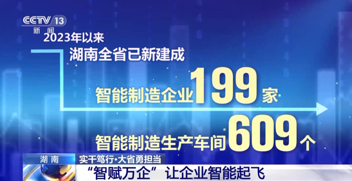 今年以来,湖南全省已新建成智能制造企业199家,智能制造生产车间609个,智能工位3066个,目前,湖南省制造业数字化研发设计普及率达79.4%。