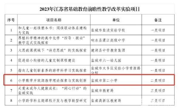 近日,江苏省教育厅公布2023年基础教育内涵建设项目名单,盐城盐都共有2个项目成功立项!