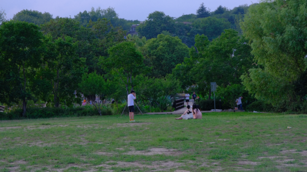 在草坪上席地而坐