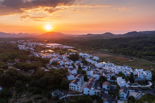 桦墅村的黛瓦白墙隐于暮色