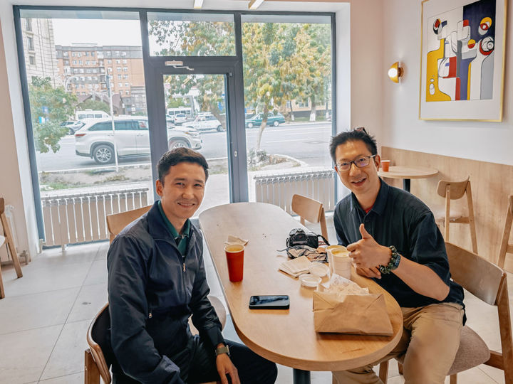 在市区一家咖啡馆,记者与奥伦巴萨尔相识。对方主动与记者攀谈,询问记者来自哪里。得知记者是中国人后,奥伦巴萨尔兴奋地用流利的中文告诉记者,自己曾留学中国,在武汉大学研读自动化专业,学成后回到家乡成为了一名中学老师,教授计算机科学。