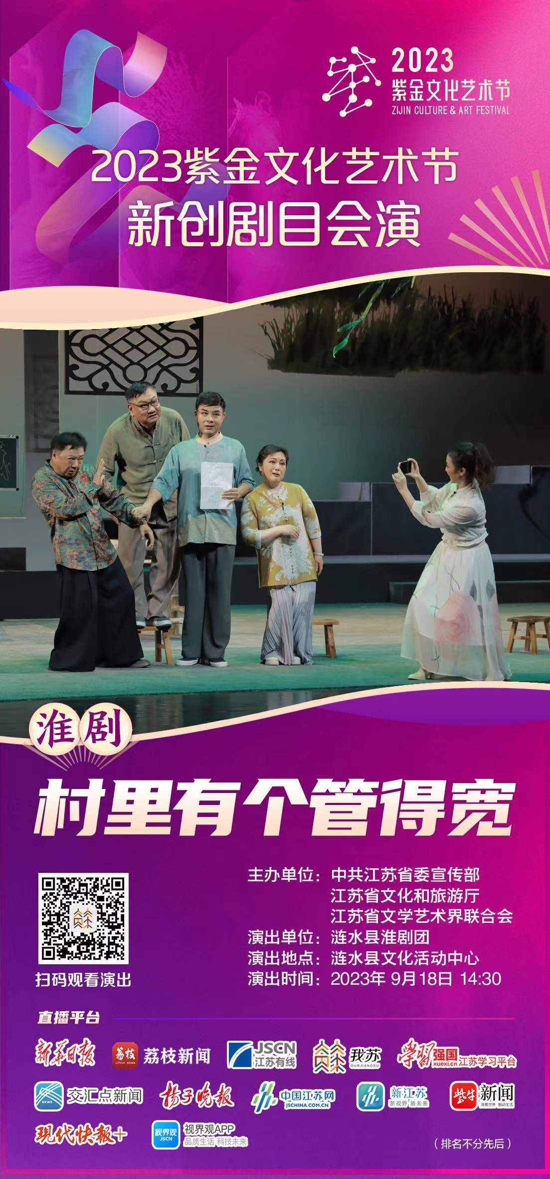 我苏客户端讯 2023紫金文化艺术节新创剧目淮剧《村里有个管得宽》,刻画塑造了一位生动鲜活的基层党员形象,并将当下的新农村生活搬上舞台,兼具时代气息和生活情趣。该剧被列为2023年度全省重大题材文艺创作重点项目、2023年度江苏艺术基金扶持项目,将于9月18日14:30,在涟水县文化活动中心上演。