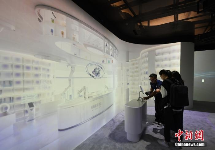 9月1日,主媒体中心展出的数字超市吸引参观者驻足。当日,杭州亚运会主媒体中心举行媒体开放日活动,现场亮相的科技与传统文化项目引人体验。