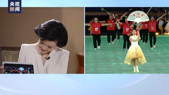 总台记者 邹韵:这次您跟夫人还出席了亚运会的开幕式。当叙利亚代表团入场时,现场可以说是热烈而沸腾。我想跟您分享一段视频,是叙利亚代表团入场时的场景。所以,当时在现场的那种场景,人们在尖叫、在欢呼,而与此同时,其实在场外,在中国的社交媒体上,这个话题也是冲上了热搜。有很多的中国网友,他们留下了很多的评论。我读了很多的评论,觉得很感动。在这里我想跟您分享其中的几条。有网友就写道说,“在废墟里也要仰望星空”;还有人说,“展现给世界的不光是满目疮痍,还有无限的生机和活力”;也有网友写道,“请让玫瑰开满大马士革”,“和平与爱留在这片深处荒漠也抬头仰望的土地”。总统先生,我们想知道,听完这些网友的评论,以及您和夫人在现场感受到的那种场景,您想对中国的观众和网友说些什么吗?