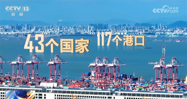 向大海,这是2013年时中国与共建“一带一路”国家间的水运航线。十年间,共建“一带一路”国家间的水运航线数量翻了一番,新增航线达到了1344条,穿梭其中的货船增加150%。“丝路海运”航线已通达全球43个国家的117个港口,织出了一张联通世界的贸易流动网络。