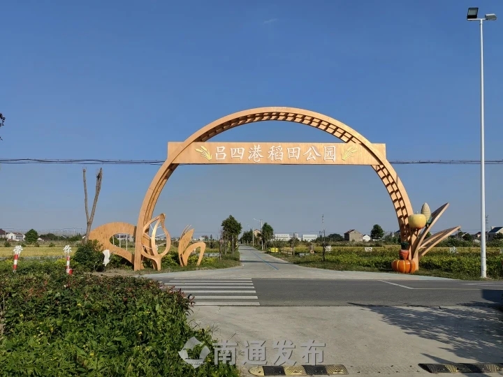 来到吕四港稻田公园,触目所及都是金灿灿、沉甸甸的稻穗。沿着主干道一路前行,网红驿站、稻田迷宫、亲子乐园、瞭望塔等游乐设施,俏皮的“吕洞宾”卡通形象伫立田间随处可见。康庄大“稻”、“稻”此一游等景观节点将吕复村文化景观串联一体。