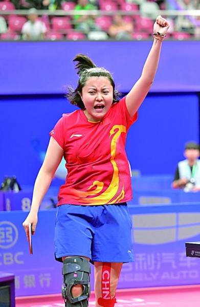 10月25日,在乒乓球女子单打9级决赛中,中国选手茅经典以3比2战胜韩国选手金均希,获得冠军。新华社记者 李贺摄
