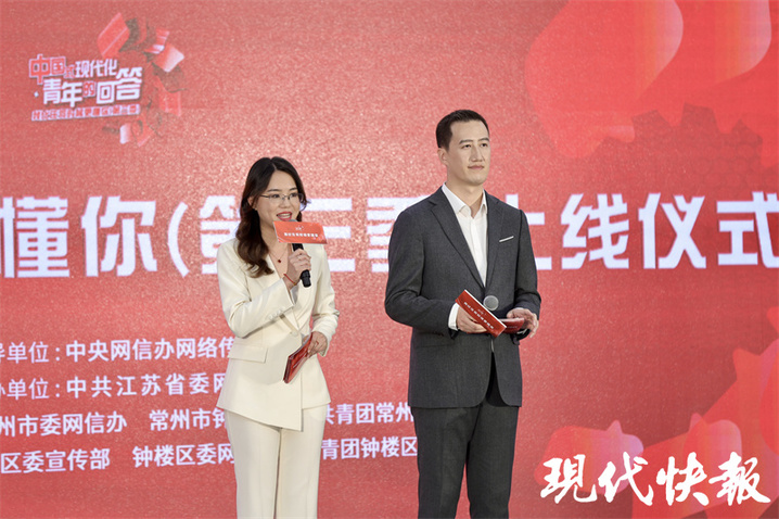 江苏省委宣传部副部长、省委网信办主任杨力群,凤凰出版传媒集团党委副书记、总经理李贞强,江苏省委网信办副主任刘伟,常州市委常委、宣传部部长陈志良,常州市钟楼区委书记沈东,常州市委宣传部副部长、网信办主任姜玉涛共同启动“中国式现代化·青年的回答——我比任何时候更懂你(第三季)”上线,30集系列短视频将陆续发布。