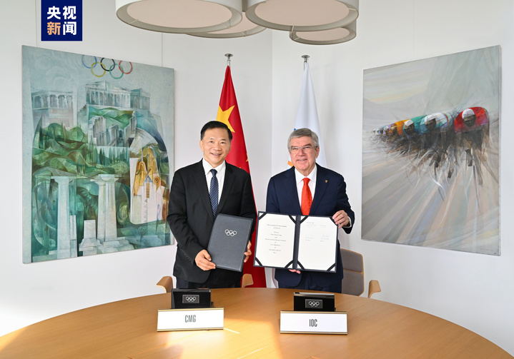 当地时间10月27日,中宣部副部长、中央广播电视总台台长慎海雄与国际奥委会主席巴赫在瑞士洛桑国际奥委会总部代表双方签署合作备忘录,将在奥运赛事转播报道、奥林匹克文化推广等领域持续深化合作。双方还在奥林匹克博物馆共同见证中央广播电视总台纪念砖揭幕。