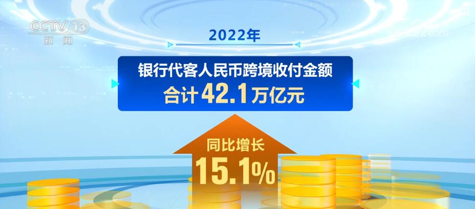 跨境人民币业务服务实体经济能力增强。2022年,银行代客人民币跨境收付金额合计为42.1万亿元,同比增长15.1%。其中,货物贸易人民币跨境收付金额占同期本外币跨境收付总额的比例为18.2%。2023年1—9月,人民币跨境收付金额为38.9万亿元,同比增长24%。其中,货物贸易人民币跨境收付金额占同期本外币跨境收付总额的比例为24.4%,同比上升7个百分点,为近年来最高水平。