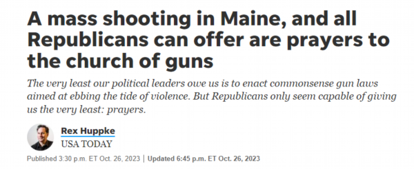 文章表示,新上任的共和党众议院议长迈克·约翰逊(Mike Johnson)对缅因州枪击案作出了标准的共和党回应,“此时此刻需要祈祷,终止罪恶,终止这种愚蠢的暴力。”