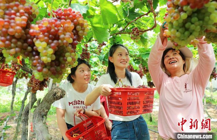 游客在周宁体验采摘高山晚熟葡萄。郑文敏 摄