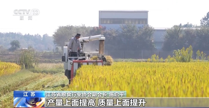 江苏省粮食行业协会副会长 施启平:优质优价带动农业,特别是农民增收,我们测算了一下有60多亿元。产量提高,质量提升,调动农民种粮积极性,夯实粮食安全根基。