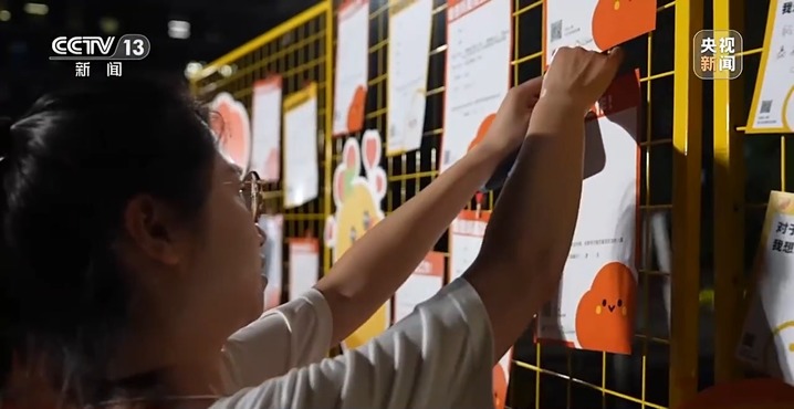 花逍:求职墙我是有两块,一块是我需要爸妈帮我,就比如说我希望给我的孩子找一个英语或者画画的家教这样的,然后就有爸妈可能会去找他,然后还有一块是爸妈找工作,就是我爸妈可以做什么,然后让他们去互相联系,互相匹配他们的需求,我以为会很冷淡,结果大家都很热烈。