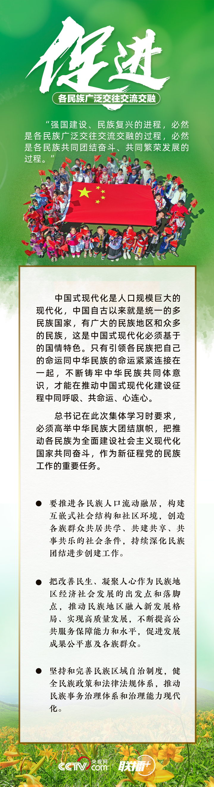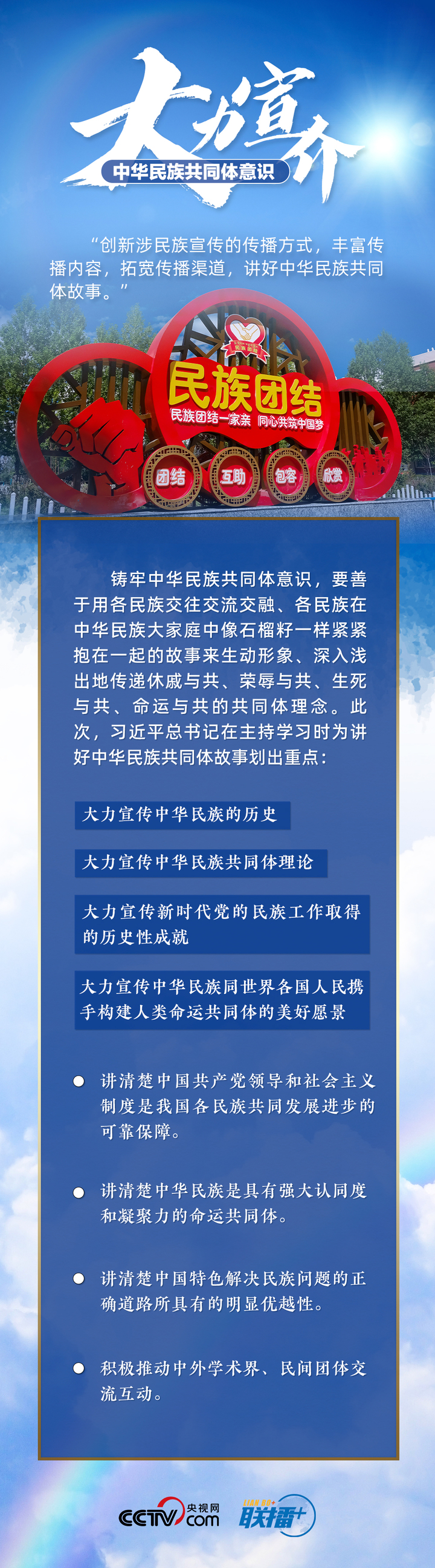 铸牢中华民族共同体意识是党的民族工作和民族地区各项工作的主线。如何推进新时代党的民族工作高质量发展?总书记有何最新部署?央视网《联播+》与您一起了解。