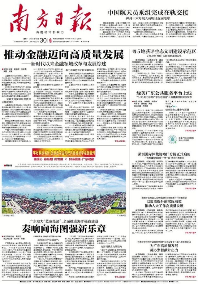 2023年4月,习近平总书记在广东视察时作出重要指示,要加强陆海统筹、山海互济,强化港产城整体布局,加强海洋生态保护,全面建设海洋强省。6月召开的广东省委十三届三次全会强调,要全面推进海洋强省建设,在打造海上新广东上取得新突破。